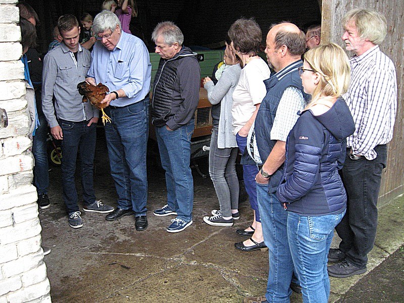 Trotz des schlechten Wetters war unser Sommerfest, welches wie immer auf dem Hof von unserem Züchterehepaar Maria und Josef Kückmann stattfand, auch in diesem Jahr wieder sehr gut besucht. Nach dem Kaffeetrinken nahm Preisrichter Fritz Kötter eine Tierbesprechung vor. Hierbei wurde manches Fachgespräch vorgenommen. Der Abend klang mit dem ein oder anderen Glas Bier und Gegrilltem aus.